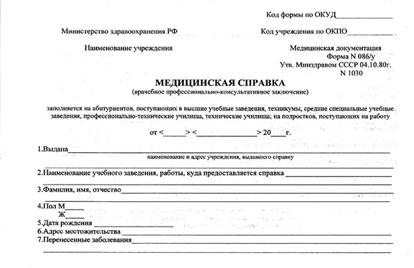 Медицинская справка формы 086/у